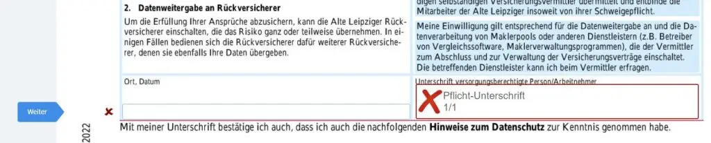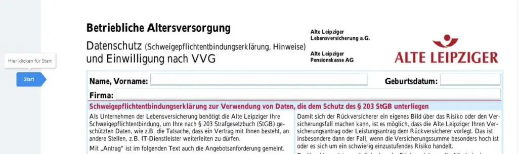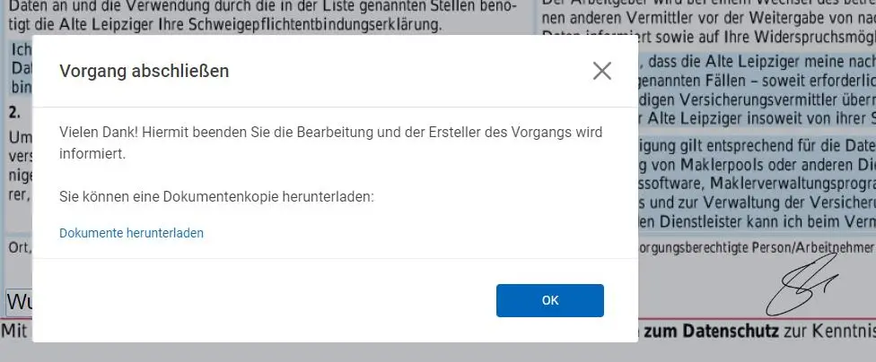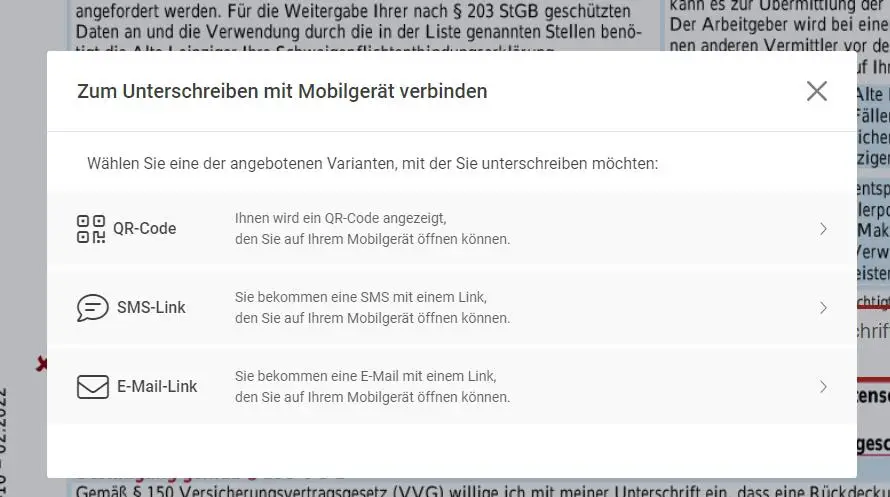 elektronische Unterschrift der Schweigepflichtentbindungserklärung der Alte Leipziger